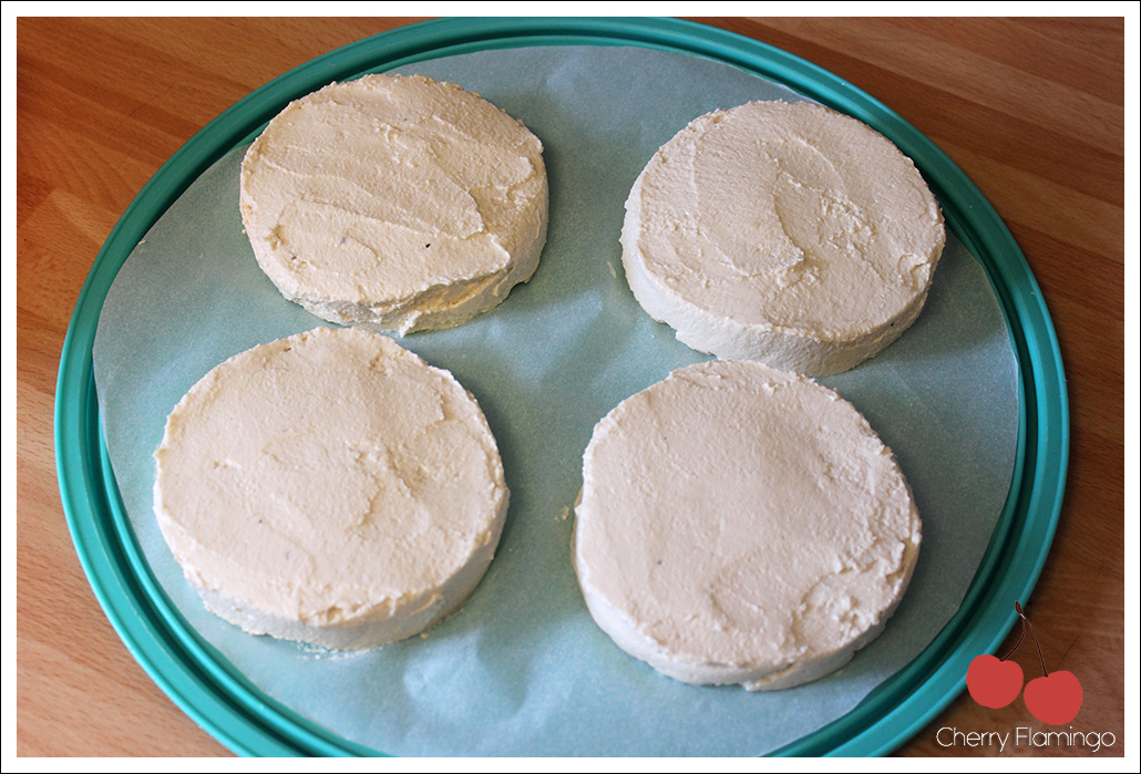 Diviser le mélange en quatre (ça fait des fromages d'environ 180/200g)