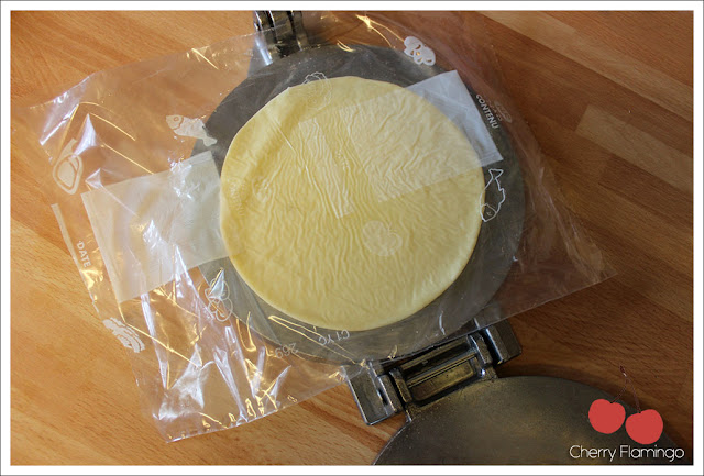 A l'aide d'un emporte pièce, mouler les vromages puis les poser sur une feuille de papier sulfurisé de la taille du couvercle de la boite en plastique.